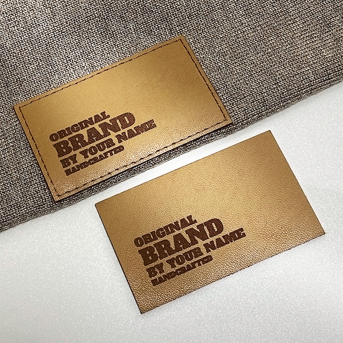 Etiqueta de cuero natural personalizada, grabada con láser y cortada según las dimensiones presentadas.