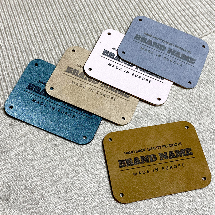 Este Etiqueta de cuero artificial Model EP-M123 puede personalizarse en tan solo unos segundos, de manera sencilla y rápida utilizando el constructor gráfico, donde puedes elegir el color del cuero de imitación, insertar tu propio logo o cualquier otra imagen con un diseño complejo, y puedes personalizar la etiqueta con tu propio texto, por ejemplo con el nombre de tu marca, un slogan, el nombre del fabricante y el país donde se ha fabricado tu producto.
