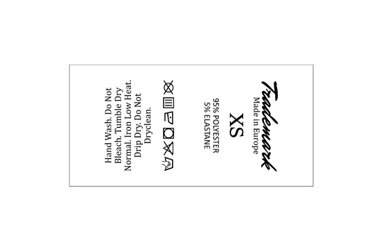 Etiqueta de composición personalizada con signos de lavado y cuidado, pero también indicador de tamaño, adecuada para cualquier producto de ropa. Este modelo de etiqueta textil se fabrica utilizando las tecnologías más avanzadas en el campo de la impresión digital en medios textiles. Las etiquetas están impresas en satén especial, por el método de transferencia térmica, con una calidad de impresión impresionante y alta resistencia al lavado.