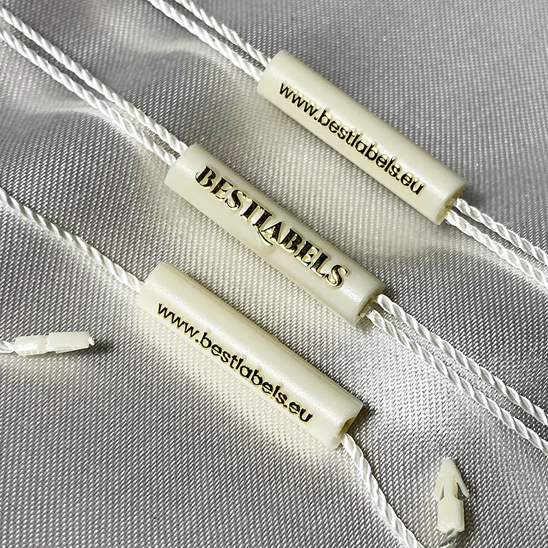 • Materiales: plástico (sello) y poliéster (cordón).